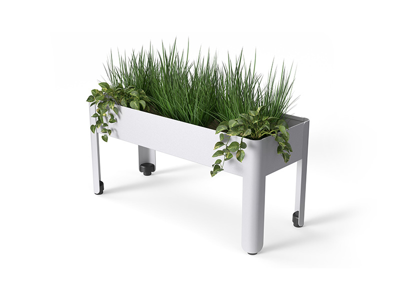 The freestanding planters come in two heights and can be made available on glides or casters, increasing their flexibility.